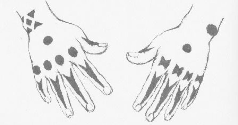 「あの世(天国)へのパスポート」の意味があり、文様を「ハジチ」と して手に施している事で「導かれ 災いから守られる」とされています。
